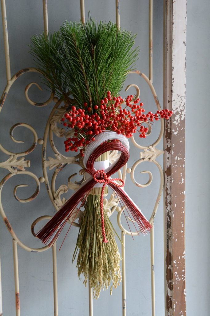 松と水引が末広がりに広がった程よい大きさのシンプルしめ飾り。